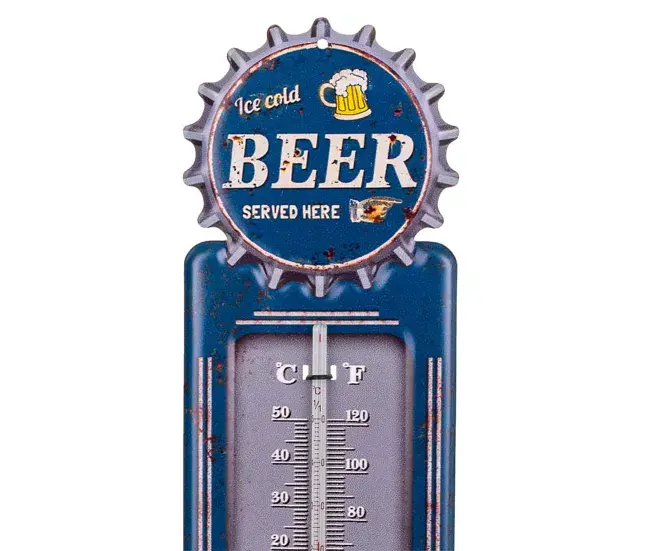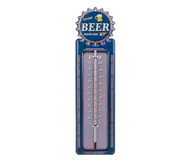 Este termómetro de pared de metal es una versión más enorme y llamativa. Con dimensiones de 47.5×15 centímetros y un perfil delgado de 1 centímetro, es una pieza decorativa que también te proporciona información sobre la temperatura ambiente.MaterialMetal