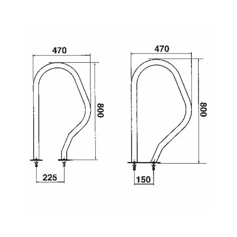 - juego de 2 pasamanos de 470 x 800 mm en tubo ø 43 mm de acero inox aisi-316 pulido brillante.