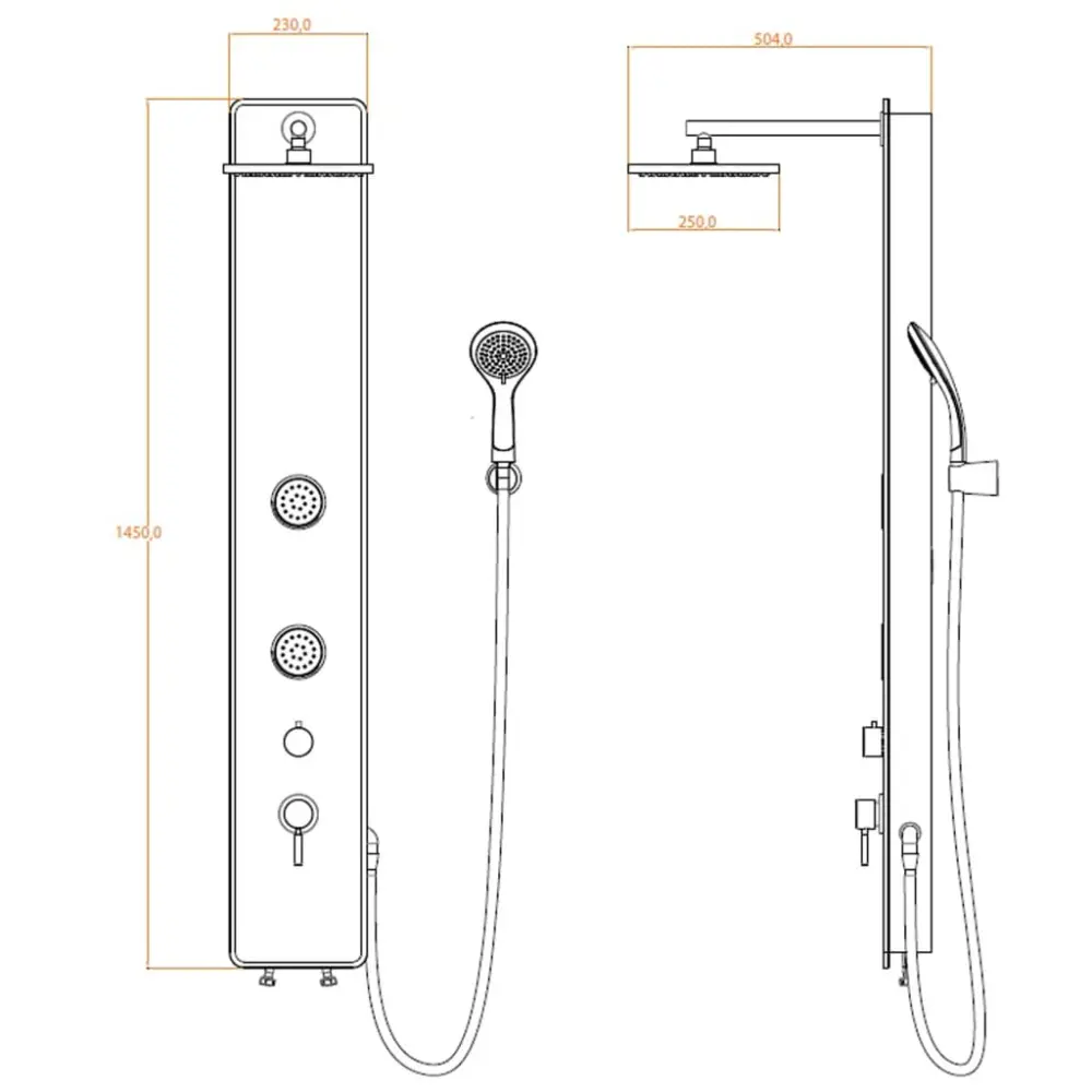 El sistema de ducha está fabricado en metal y tiene una larga vida útil. Viene con un cuerpo de panel de vidrio de seguridad. El set de ducha con desviador permite alternar sencillomente entre ducha mural, teleducha y chorros de masaje.