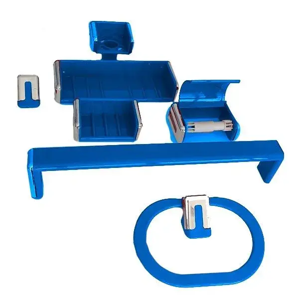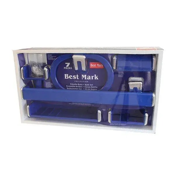 Los accesorios del baño son casi tan crucials como los propios sanitarios dada su practicidad y el hecho de que pone a nuestro alcance todo lo que necesitamos. El set de Best Mark se compone de 7 piezas indispensables en todo cuarto de baño ya que te harán la vida mucho más sencillo, además de impregnar de color las paredes de tu aseo. Este juego de accesorios cuenta con jabonera, barra y anilla para toalla, soporte para el papel higiénico, gancho para albornoz y vaso con soporte para el cepillo de dientes. Están fabricados en plástico resistente con acabado en un distinguido color azul y bordes cromados.