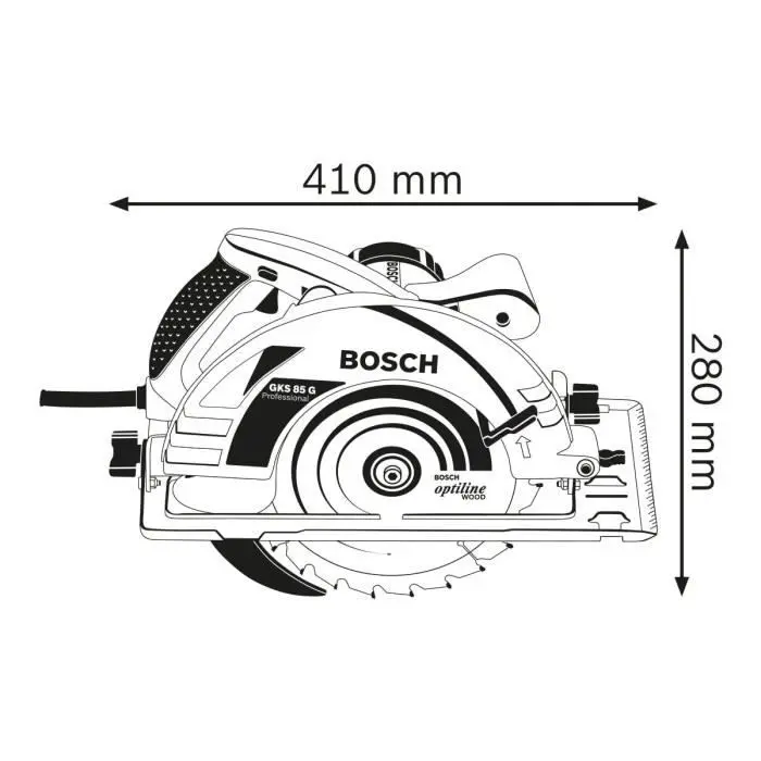 La sierra circular Bosch Professional GKS 85G – 060157A900 es una potencia optimizada para carriles guía. Es perfectamente compatible con el nuevo sistema de carriles guía FSN de Bosch y con carriles de otros fabricantes. Habilita ejecutar cortes en ángulo con el carril guía sin adaptador.Especificaciones