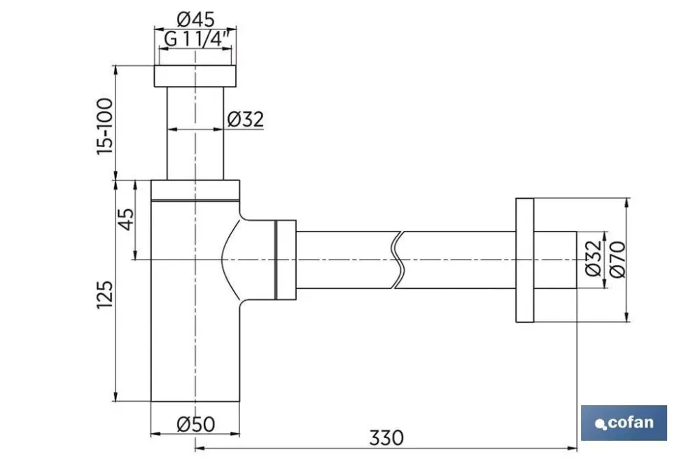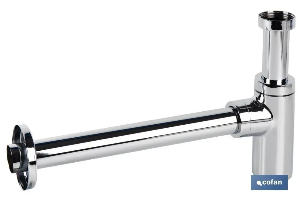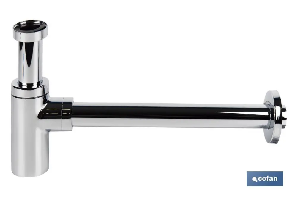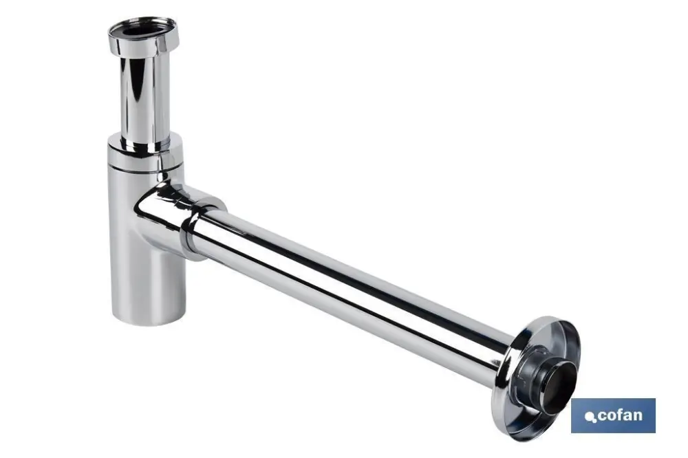 Sifón botella extensible. Diseño cilíndrico y minimalista. Gracias a su recubrimiento cromado brillante y atractivo, es ideal para instalaciones al descubierto. Alta capacidad de desagüe. Racor 1 1/4. Salida horizontal de 330 mm de longitud y ø32 mm.Especificaciones