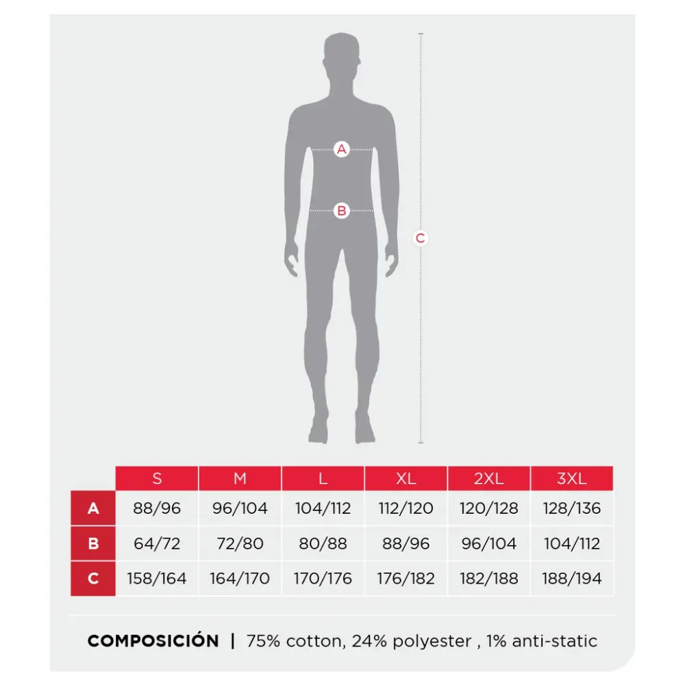 Pantalón de gran protección y confort, diseñado específicamente para soldadura y procesos afines. Fabricado con 75% de algodón tratado con FR, 24% de fibra de poliéster y 1% de fibra antiestática, este pantalón garantiza seguridad y durabilidad. Ofrece protección contra productos químicos líquidos, calor, llamas y propiedades electroestáticas, así como peligros térmicos de arco eléctrico. Con un diseño funcional que incluye dos bolsillos superiores y un bolsillo lateral con cierre de velcro, cumple con las normativas de seguridad EN13034, EN11611, EN11612, EN1149-5 y EN61842-1. Reabastecido en color Rojo SOLTER y Gris, une visibilidad y estilo.Especificaciones