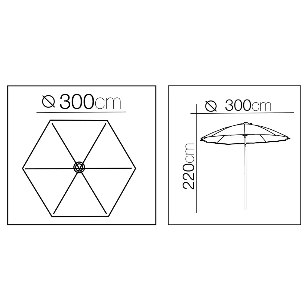 Sombrilla octogonal en color beige, elegante y funcional, ideal para proporcionar sombra en amplias zonas exteriores como terrazas, jardines o patios. Fabricada en poliéster de alta densidad (180 g/m²), combina resistencia, ligereza y un estilo moderno.