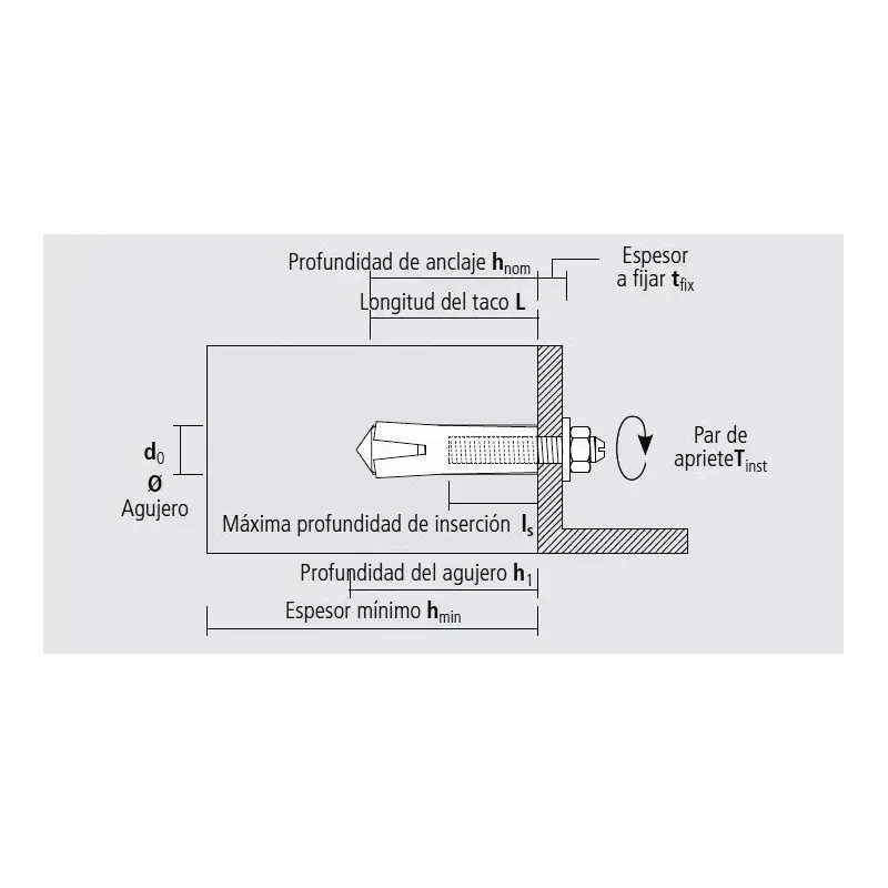 Alcanza altos valores de carga en pequeñas distancias axiales y al eje. La gran expansión permite altas cargas en agujeros menores y reducidos empotramientos.