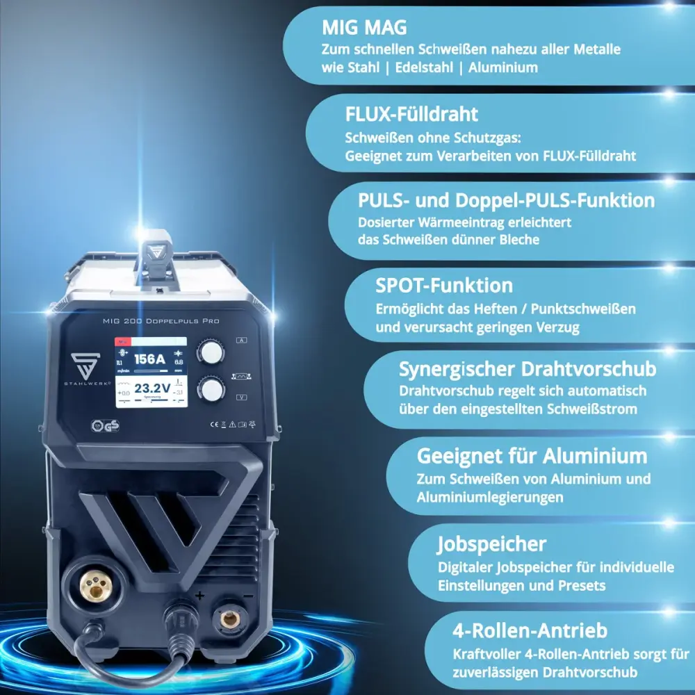 Stahlwerk Mig Mag 200 Doble Pulso por equipo completo Máquina ✓ Cubrecalzado resistente a chispas para proteger el calzado ✓ Estuche de transporte con compartimentos para cada herramienta ► Equipa tu taller con los mejores accesorios