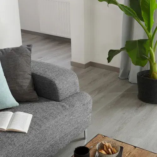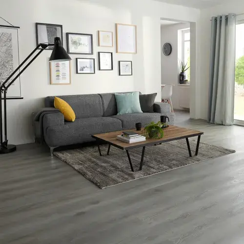 Cambie su diseño de interior con un suelo rígido de vinilo Drop Click resistente al agua y al calor, duradero y muy sencillo de colocar. Una manera sencillo de hacer un gran cambio en su diseño de interior. El patrón decorativo de estas lamas de vinilo reproduce fielmente un suelo clásico de madera gris auténtica. Ofrece una gran calidad a un precio excelente.El relieve, junto con el patrón de madera, otorga personalidad y más realismo al suelo.Este suelo se puede colocar lama a lama de forma extremadamente sencilla gracias al sistema de colocación Drop Click; utilizando solo un cuchillo multiusos, ensucia muy poco y crea muy poco polvo. Recomendamos el uso de una base para optimizar las propiedades de aislamiento y nivelar el suelo, con lo que se logra un acabado óptimo. Indicado para cualquier habitación con poco o mucho tránsito. Compatible con calefacción por suelo radiante. Producto certificado con poca emisión de aire interno (A+).Atributos y beneficios