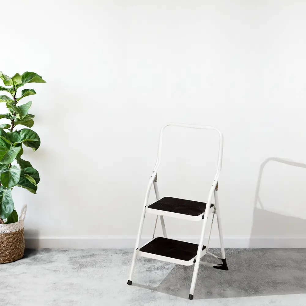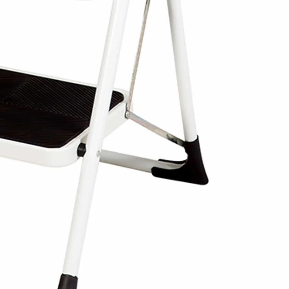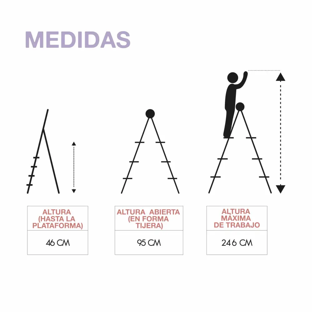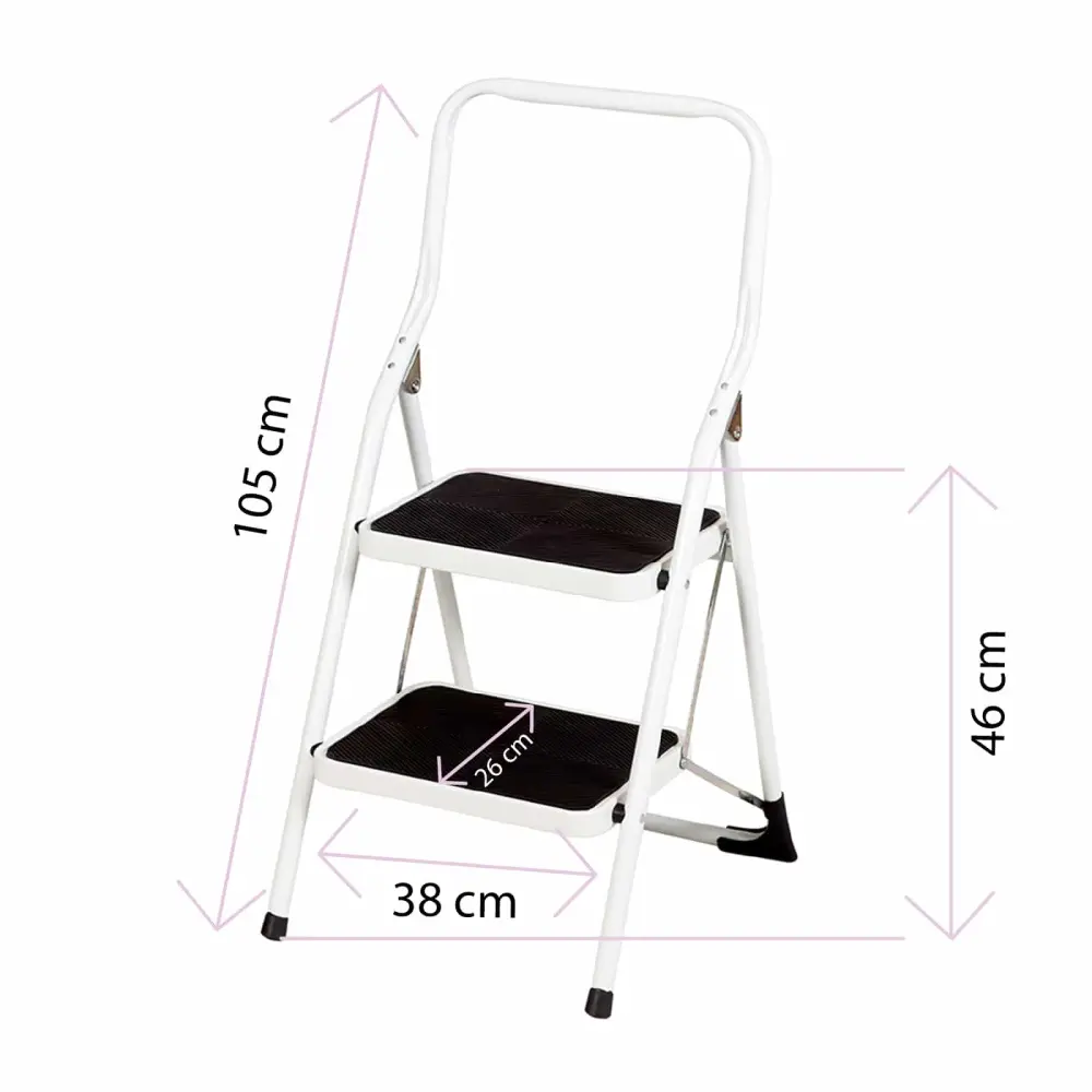 Taburete escalera de uso doméstico con estructura de tijera con 2 peldaños. Este taburete es un accesorio indispensable, ya que te permitirá acceder a muebles altos de cocina, estanterías o zonas superiores de armarios. Gracias a que cuenta con la cómoda ventaja de que se pliega, puedes almacenarlo de forma que no ocupe casi espacio y podrás tenerlo a mano siempre que lo necesites. Está fabricado con acero, y sus peldaños tienen relieves antideslizantes para mayor seguridad en los trabajos que requieren altura. Cuenta con una barandilla para mayor protección, que te ofrece un punto de apoyo firme y tacos antideslizantes.La carga máxima por peldaño es de 150 kg. Con esta escalerilla obtenerás una altura máxima de trabajo recomendada de 246 cm, indicado para tareas de limpieza, mudanzas, colgar cuadros, alterar bombillas etc. Muy útil para el trastero, garaje, cocina o cualquier estancia de la casa donde lo necesites. Este taburete cumple la Normativa EN14183: establece los requisitos que deben satisfacer los taburetes de peldaños en cuanto al diseño, dimensiones, materiales etc.Atributos:– Uso: Doméstico.- Seguridad: 2 años.- Masa ligero: 5,8 kg.- Altura abierto en forma tijera: 95 cm.- Altura hasta la plataforma: 46 cm.- Altura máxima de trabajo recomendada: 246 cm.- Talla plegado: 9x49x105 cm.- Telaes: Acero.- Tono: Gris.- Plegado fácil.Especificaciones