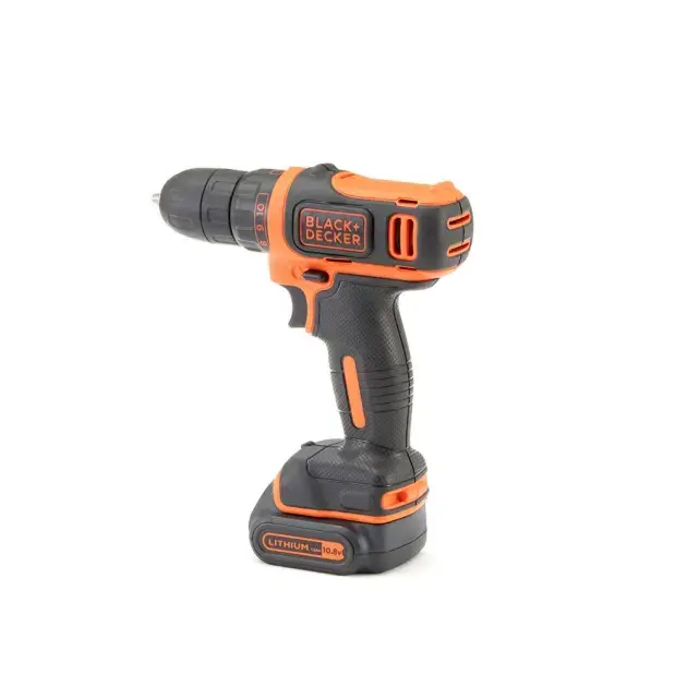 Taladro atornillador Black&Decker inalámbrico de alto rendimiento con batería de ión-litio de 10,8 V. Se trata de un producto ultracompacto y ligero, ideal para zonas estrechas de difícil acceso. Ofrece 11 posiciones de embrague diferentes para ofrecer un control preciso al taladrar en madera, metal o plástico, así como en todas las tareas de atornillado. La luz de trabajo LED proporciona una mayor visibilidad cuando se trabaja en zonas oscuras. La batería de ión-litio puede sostener la carga hasta 18 meses mientras no está en uso.Es perfecto para cualquier trabajo de bricolaje que implique taladrado y atornillado alrededor de la casa, ya sea en madera, metal o plástico .