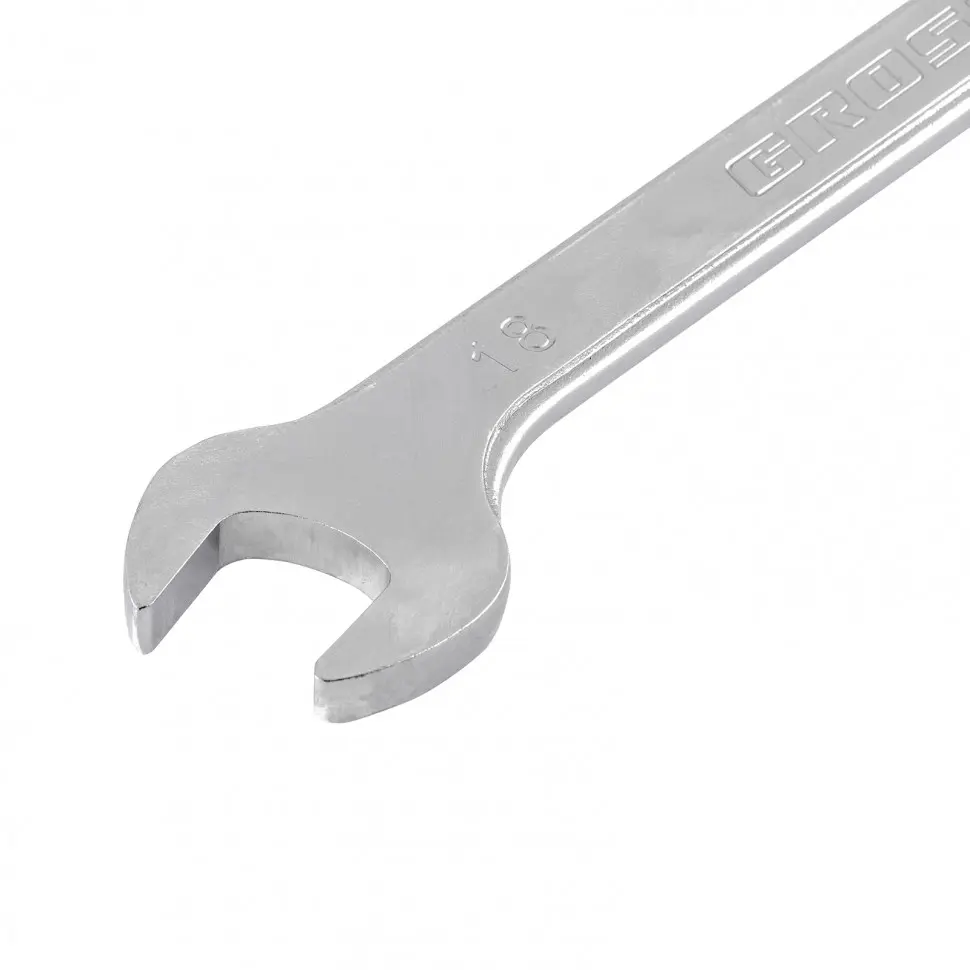 GROSS – Llave mixta de trinquete – 18 mm• 18 mm • Lado plano • Lado de ojo de trinquete de 12 bordes • Acero de alta calidad • Durable y confiableMás que una simple llaveLa llave mixta de trinquete GROSS está diseñada para trabajos de montaje/desmontaje, atornillado/desatornillado. Será especialmente útil para operaciones de reparación mecánica, instalación de muebles, etc.Tiene un lado tipo llave plana y otro lado tipo llave de ojo, con trinquete. El trinquete es una verdadera ventaja en comparación con una llave clásica: permite trabajar de manera más eficiente, más rápida y en espacios más reducidos.Calidad garantizadaFabricada con una política de calidad, esta llave utiliza materiales sólidos: acero de alta calidad, así como un revestimiento anticorrosión. Estas características le permiten resistir fuertes tensiones.La herramienta cumple con la norma alemana DIN, lo que garantiza su alta calidad y confiabilidad.Comodidad de usoSu revestimiento mate, no resplandeciente, permite un excelen
