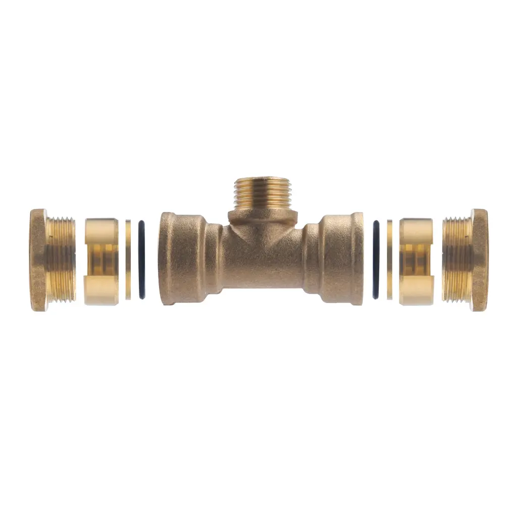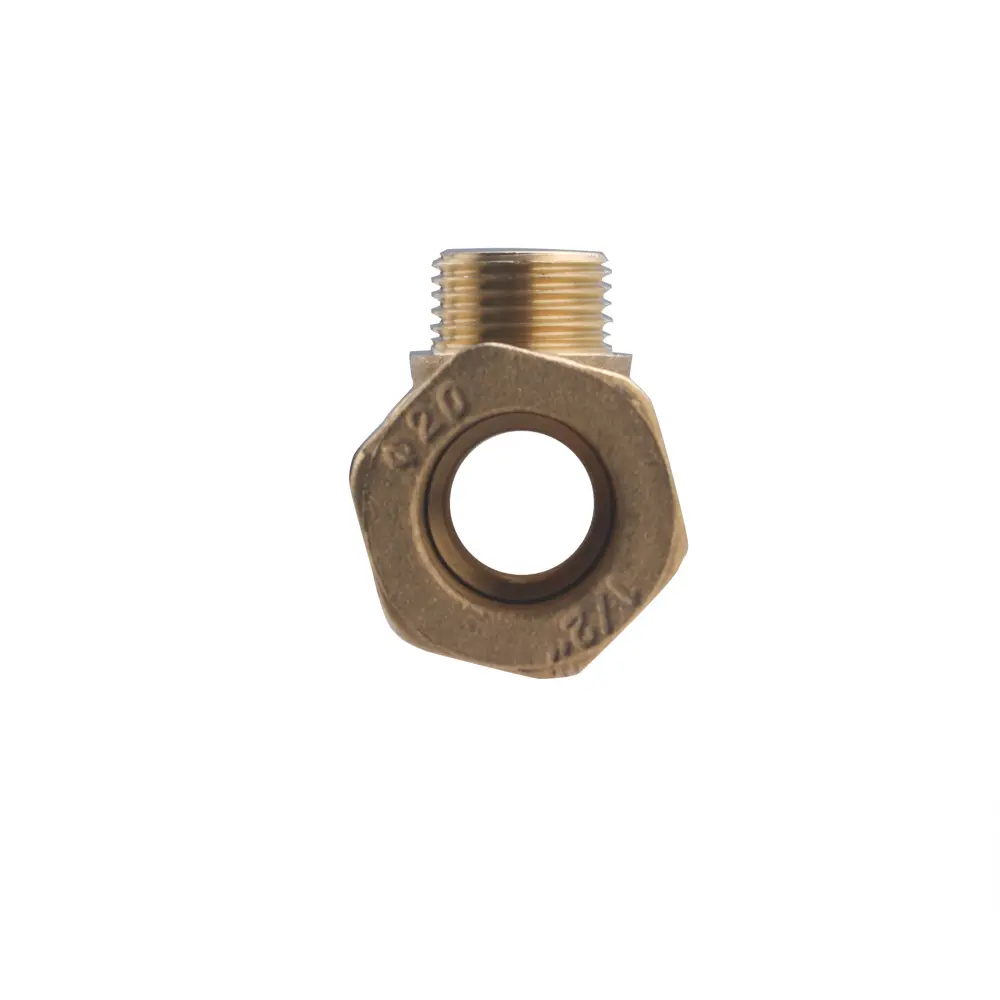racor de latón que permite ejecutar un empalme entre 2 tubos de pe, red enterrada antes del contador. Fijación exterior