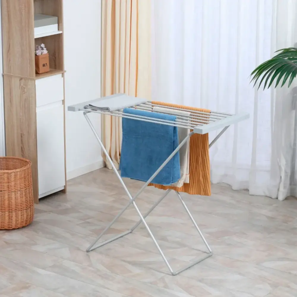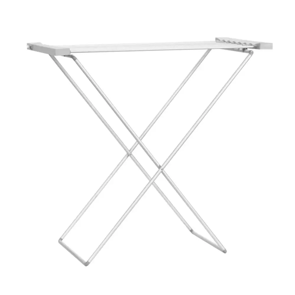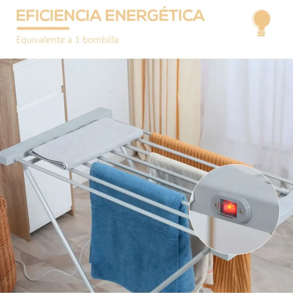 ¿Tienes poco espacio para tender tu ropaen casa? ¿Te gustaría que se secara en un santiamén? Entonces este tendederoeléctrico de Homcom es la respuesta. Está fabricado con aleación de aluminio yABS, materiales resistentes y duraderos para un uso prolongado, capaz desoportar hasta 10kg de peso. Cuenta con una potencia de 120W y un rango de temperaturaentre 45 y 55ºC, con un grado de impermeabilidad IPX2. Su estructura en formade X le aporta mayor estabilidad. Sus 8 barras calefactoras te permitiránintegrar muchas prendas para un secado apropiado. Es plegable, por lo que teresultará muy fácil guardar bajo la cama o tras una puerta cuando no loestés usando. ¡No lo pienses más y seca tu ropa a la velocidad de la luz coneste estupendo tendedero eléctrico a un precio de chollo!