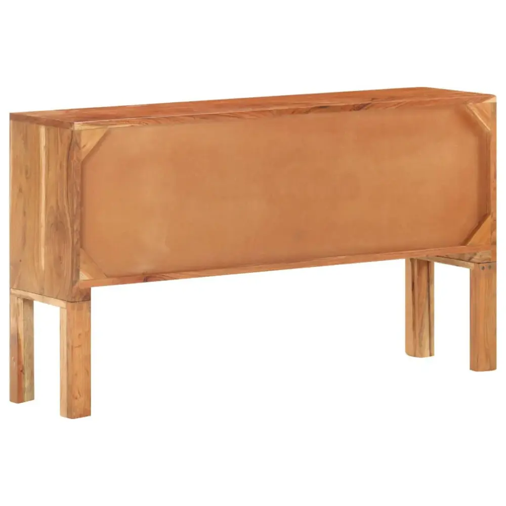 Este aparador de madera de acacia maciza con un acabado natural cuenta con un diseño atractivo. La belleza de la madera de acacia cobra vida en las únicas vetas de cada pieza, asegurándote un mueble que es tan especial como tú. Con dimensiones de 116 x 30 x 66 cm (An x Prof x Al), está equipado con dos puertas y dos compartimentos abiertos, lo que te permite almacenar fácilmente revistas, libros y otros objetos de manera ordenada. La sólida superficie ofrece una base perfecta para tus objetos decorativos, como marcos de fotos y plantas en macetas. Esta pieza no solo es