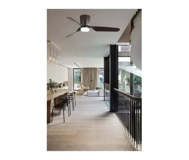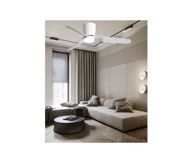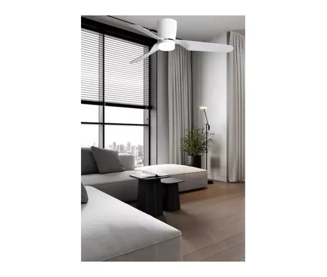 Ventiladorde techo con led integrado modelo KOCHI en color blanco con tres aspas en color blanco. Esta provisto de motor DC y cinco velocidades. De medidas 27 cm de altura y 132 cm de diametro.Tecnología LED integrada con una potencia de luz de 18 watios, 2350 lúmenes. De luz regulable (desde 3000, 4000, 6000 k).Ademas ofrece mando a distancia con MEMORIA DE COLOR incorporada y TEMPORIZADOR 1/4/8H.El ventilador Kochi tiene un consumo de 6 W 10 W 17 W 24 W 33W para cada una de sus 5 velocidadesRPM 100 rpm 120 rpm 140 rpm 160 rpm 180 rpmFlujo Aire 2700 m3 3500 m3 4000 m3 5000 m3 5500 m3Nivel sonido 8 dB 12 dB 19 dB 25 dB 36 Ese ventilador lo podemos utilizar como lampara durante todo el año, ademas de poder elegir el tipo de luz que mas nos interese en cada momento, ya sea calida-neutra-fria.Los ventiladores provistos de motor DC nos aportan mas de un 50% de ahorro energetico, ademas de una mayor vida util, al disponer de 5 o 6 velocidades el desg