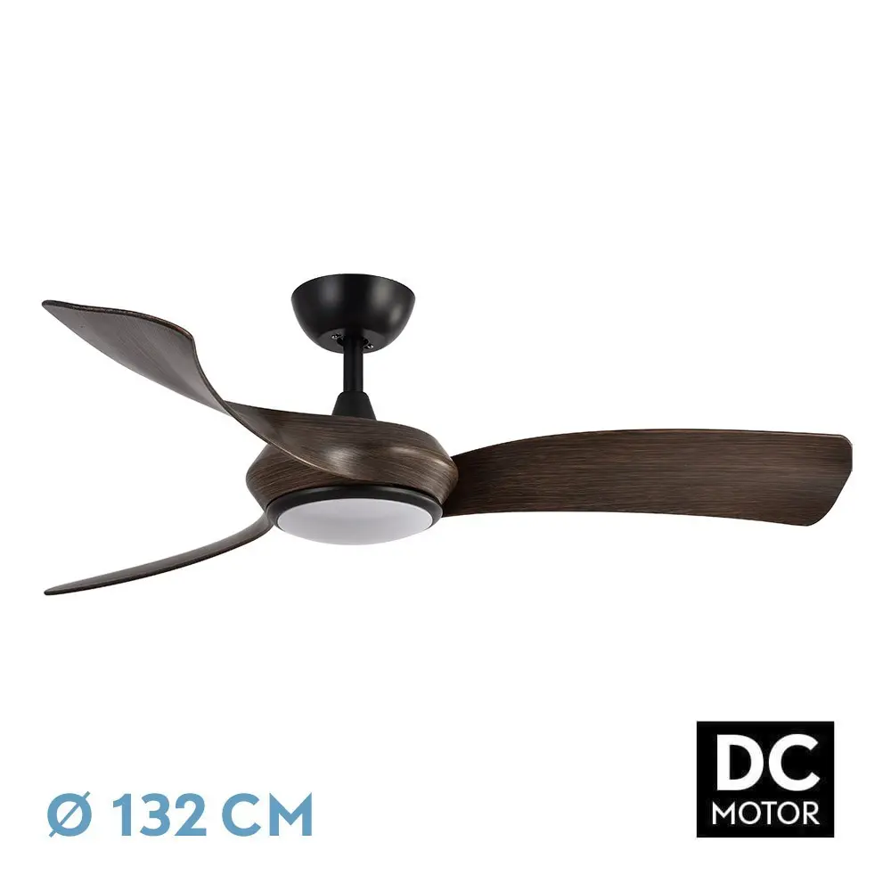 Ventilador DC de la serie CERDEÑA realizado en metal, ABS y policarbonato, en color NEGRO con tres aspas de color ROBLE.Tiene seis velocidades ajustables con motor DC.Tecnología LED incorporada con una potencia de 30W, con 3 TEMPERATURAS SELECCIONABLES DE LUZ( 3000-4500-6000K) y 2950 lúmenes.Su diseño moderno pero a la par que elegante, con aspas aerodinámicas de gran tamaño, lo hacen ideal para salones, comedores, espacios abiertos y zonas de trabajo.Tiene unas dimensiones de 33,7/46,2x132x132 centímetros, dispone de dos medidas de TIJA (12,5 cm y 25 cm), lo que permite ajustarlo a distintas alturas.Control de aire verano o invierno.Mando a distancia INCLUIDO con REGULADOR DE INTENSIDAD, MEMORIA DE COLOR incorporada y TEMPORIZADOR 1/2/4/8 H.Modelo disponible en color blanco/haya y negro/roble. Número de aspas:3Número de velocidades ajustables:6Control de aire para verano o inviernoMedida del diámetro (cm. ):132Tipo de motor: Motor DCTemporizador ventilador:1H < 8HIncluye Tija de dos medi
