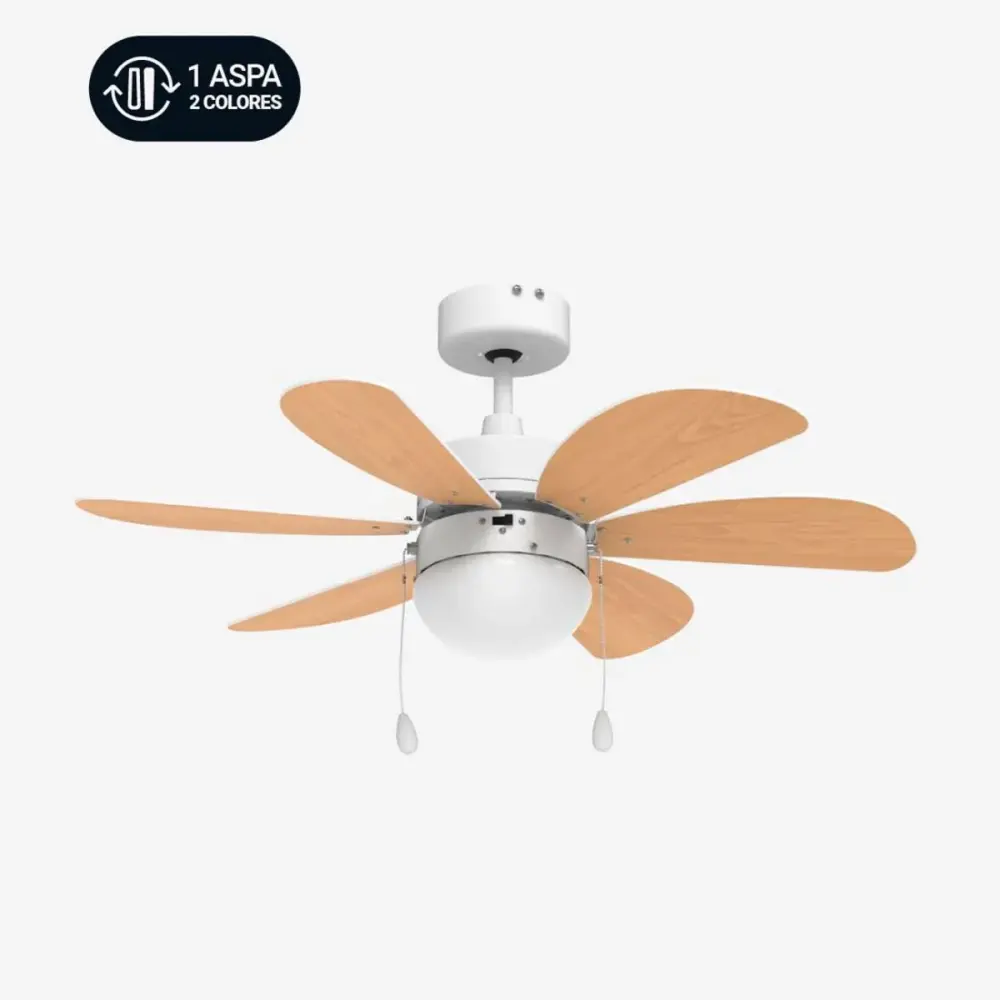 Ventilador de techo Geneva Universal Blue 6 aspas reversibles blanco/natural ✓ Instalación directa en el techo sin necesidad de cables visibles ✓ Cubiertas desmontables para facilitar la limpieza del polvo ► Instala tu aplique de techo hoy