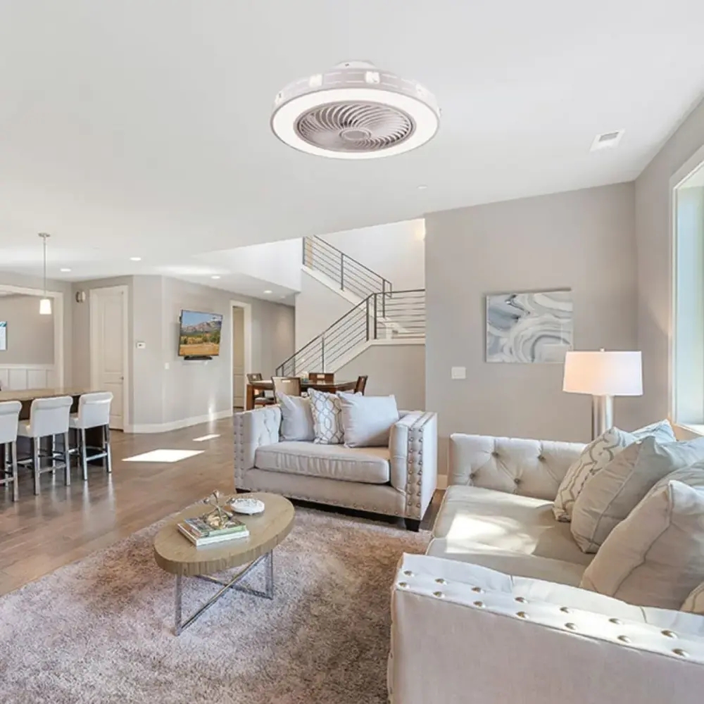 Enamórate de la belleza y la funcionalidad del ventilador detecho Kairos. Con una potencia de 72W y un motor DC eficiente con 4 velocidades,el ventiladorKairos ofrece un rendimiento excepcional con un consumo mínimode energía. Sus 5 aspas no solo proporcionan un diseño discreto yelegante, sino que también aseguran una distribución uniforme del aire en todala habitación, creando un ambiente fresco y confortable en cualquier momento. La incorporación de una potente lámpara LED con 6800 lúmenes ofrece unailuminación radiante y eficiente,con una temperatura del color regulable entre 3000Ky 6000K para ajustarse a cualquier ambiente y estado de ánimo.Cuenta conel modo verano/invierno con el que ajustar el flujo de aire en función a laestación del año, posee un temporizador de 2 horas, cuenta con función dememoria y rejilla giratoria para orientar el aire. Además, podrás ajustar la temperatura de la luz yla intensidad sencillomente. El ventilador de techoKa