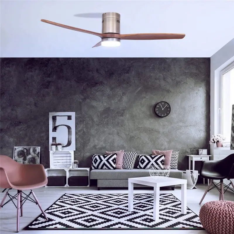 Ventilador de techo grande con motor DC que permite disminuir el consumo energético a la vez que mueve una gran cantidad de aire consiguiendo un ventilador muy eficiente. Se instala directo a techo, no puede regularse su altura. Este ventilador cuenta con 5 velocidades y función verano invierno que permite su uso durante todo el año. Sus tres palas están hechas de madera puro. Tiene integrada iluminación led de 15W con tres tonos de luz. Gracias a la función memoria, permite recuperar el último encendido de luz. Puedes programar el funcionamiento del ventilador en periodos de 1 – 2- 4 – 8 horas y al completar el tiempo establecido el ventilador se apagará.Especificaciones