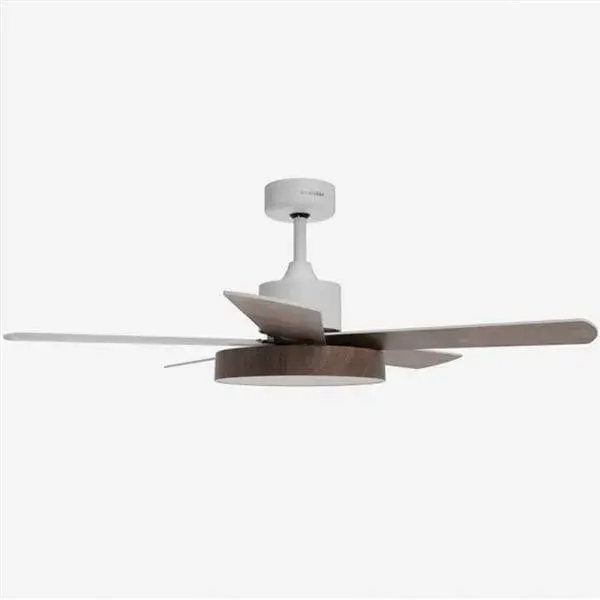 El ventilador de techo modelo Levante de la marca De uso general Blue te permite disfrutar de ventilador y lámpara ¡2 en 1! Gracias a sus 60W de potencia será capaz de refrescar los días más calurosos de tu verano, pues sus 5 aspas de MDF se encargarán de la perfecta distribución del aire. Además, su luz LED de 24W y 3 tipos de luz RGB te permitirá seleccionar el tono de luz que prefieras (cálida, blanca o fría). Está equipado con temporizador y control remoto y su motor DC lo hace muy silencioso. Podrás optar por entre sus 6 velocidades, cuenta con modo invierno con el que podrás activar el giro invertido de las aspas para compartir el aire caliente que se acumula contra el techo y, además, las aspas son reversibles lo que te permitirá combinar sus 2 colores. La instalación es muy sencilla e incluye los accesorios necesarios para llevarla a cabo.