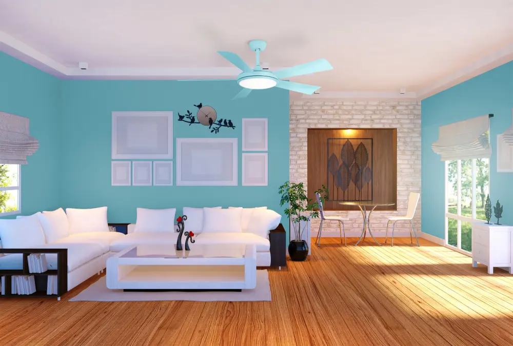 Ventilador de techo motor DC LED CCT Azul WIFI ★ Sistema de suspensión equilibrada para operación sin vibraciones ★ Aspas inclinadas para mayor movimiento de aire en la habitación → Refresca tu hogar con estilo