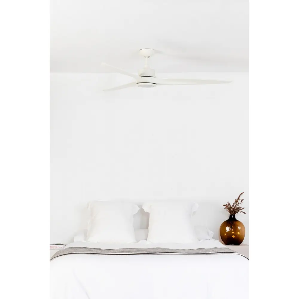 Ventilador modelo Tonic con motor DC y led integrado de 15W-3000K-1200lm, de 152 cm.de diametro y 31 cm.de altura, con seis velocidades regulables mediante mando a distancia incluido.Motor en acero acabado blanco, con tres palas en abs blancas y difusor de policarbonato. Este modelo dispone de funcion inversa para verano-invierno.Reabastecido tija prolongadora para mas altura (consultar).Tapa de luz incluida.TIPO DE MOTOR: DC con una potencia de ventilacion de W: 5-7-9-11-14-18, RPM: 100-120-140-160-180-200, FLUJO DE AIRE: 180,57 m3 min / 6377 CFMW/VELOCIDAD 1: 5W/VELOCIDAD 2: 7W/VELOCIDAD 4: 11W/VELOCIDAD 5: 14W/VELOCIDAD 6: 18RPM/VELOCIDAD 1: 100RPM/VELOCIDAD 2: 120RPM/VELOCIDAD 3: 140RPM/VELOCIDAD 4: 160RPM/VELOCIDAD 5: 180RPM/VELOCIDAD 6: 200Los ventiladores provistos de motor DC nos aportan mas de un 50% de ahorro energetico, ademas de una mayor vida util, al disponer de 5 o 6 velocidades el desgaste en cada una de ellas siempre va a ser menor que un ventilador de 3 velocidades. A