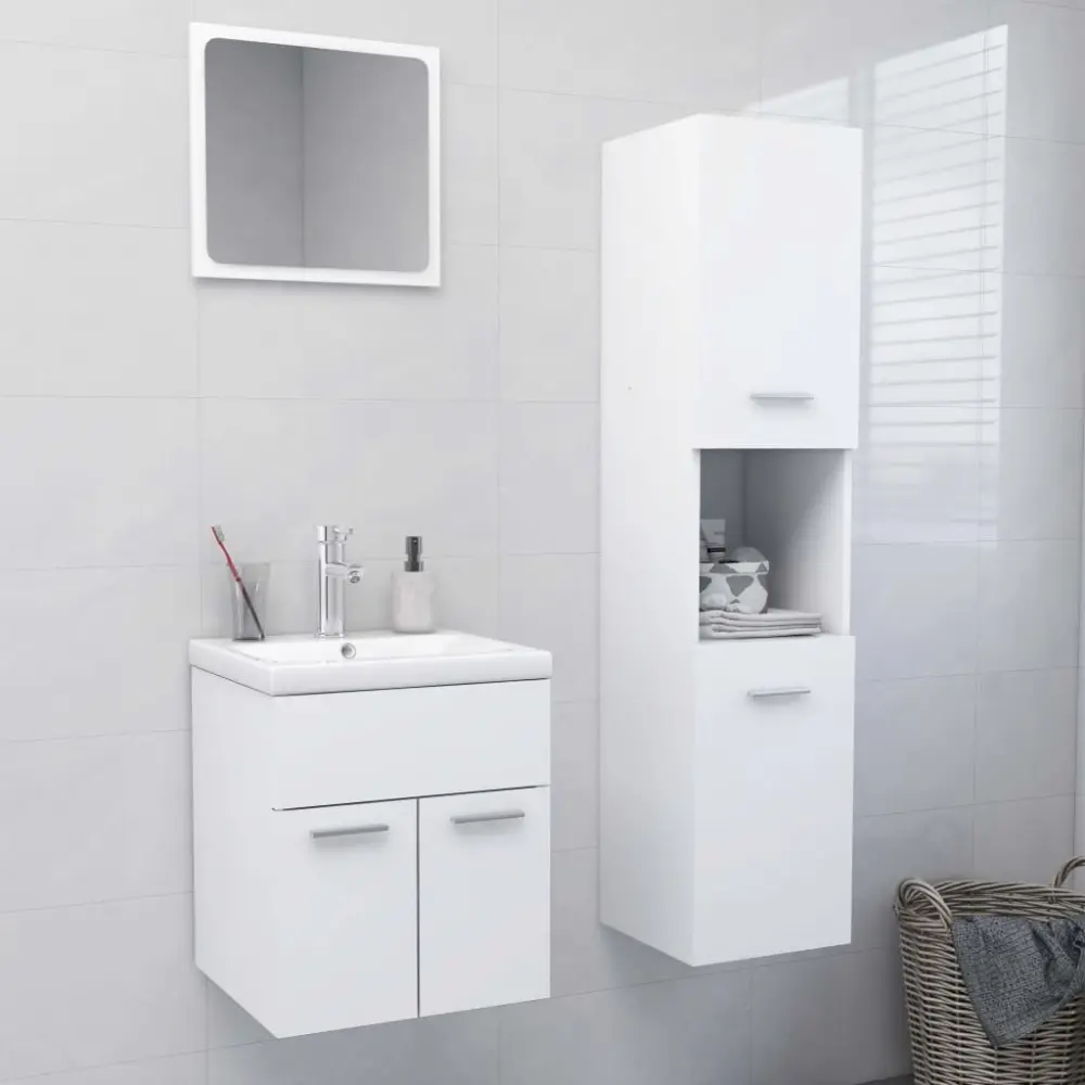 vidaXL juego de muebles de baño madera de ingeniería ★ Color uniforme en toda la superficie visible ★ Compartimento con enchufe para aparatos eléctricos → Organiza tu baño con estilo