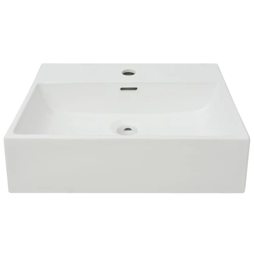 vidaXL lavabo con orificio para grifo cerámica ● Fácil instalación con sistema de montaje incluido ● Acabado mate que no muestra huellas dactilares ▶ Descubre lavabos de diseño para tu hogar