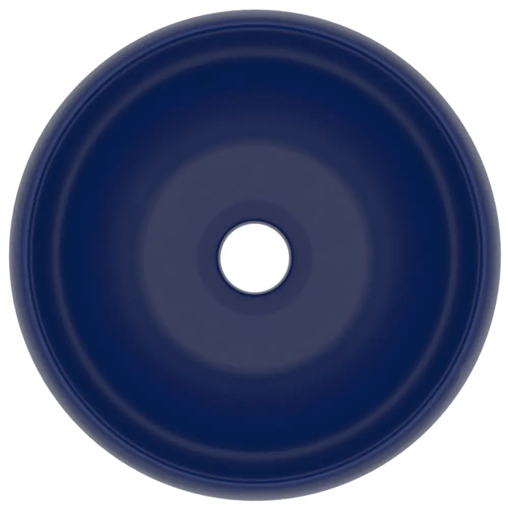 vidaXL lavabo de lujo redondo cerámica azul oscuro mate ● Material ligero pero de gran estabilidad ● Diseño compacto ideal para baños pequeños ▶ Descubre lavabos de diseño para tu hogar