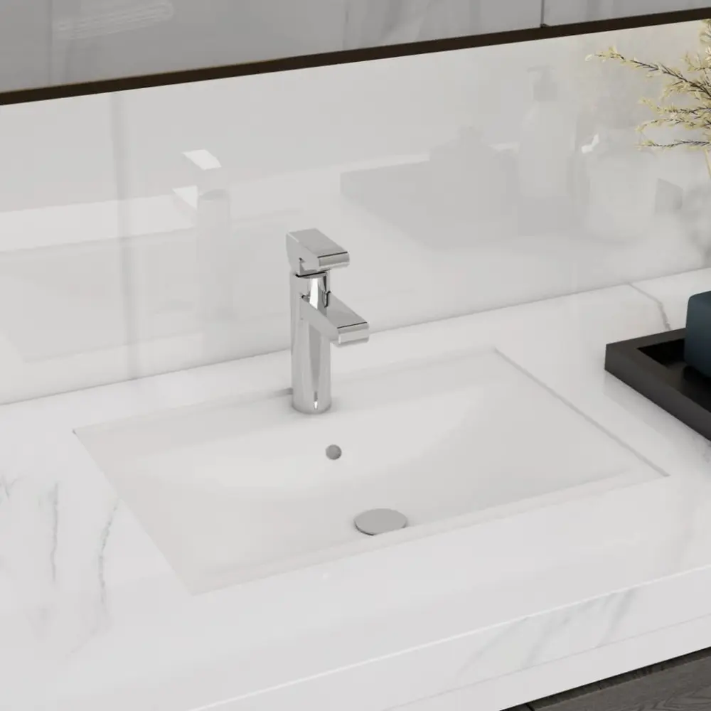 vidaXL lavabo rectangular de cerámica hueco de grifo/desagüe ✔ Compatible con bañeras de acrílico, hierro fundido y fibra de vidrio ✔ Espacio para sostener tu libro, teléfono y una bebida 🛒 Disfruta de un baño de lujo