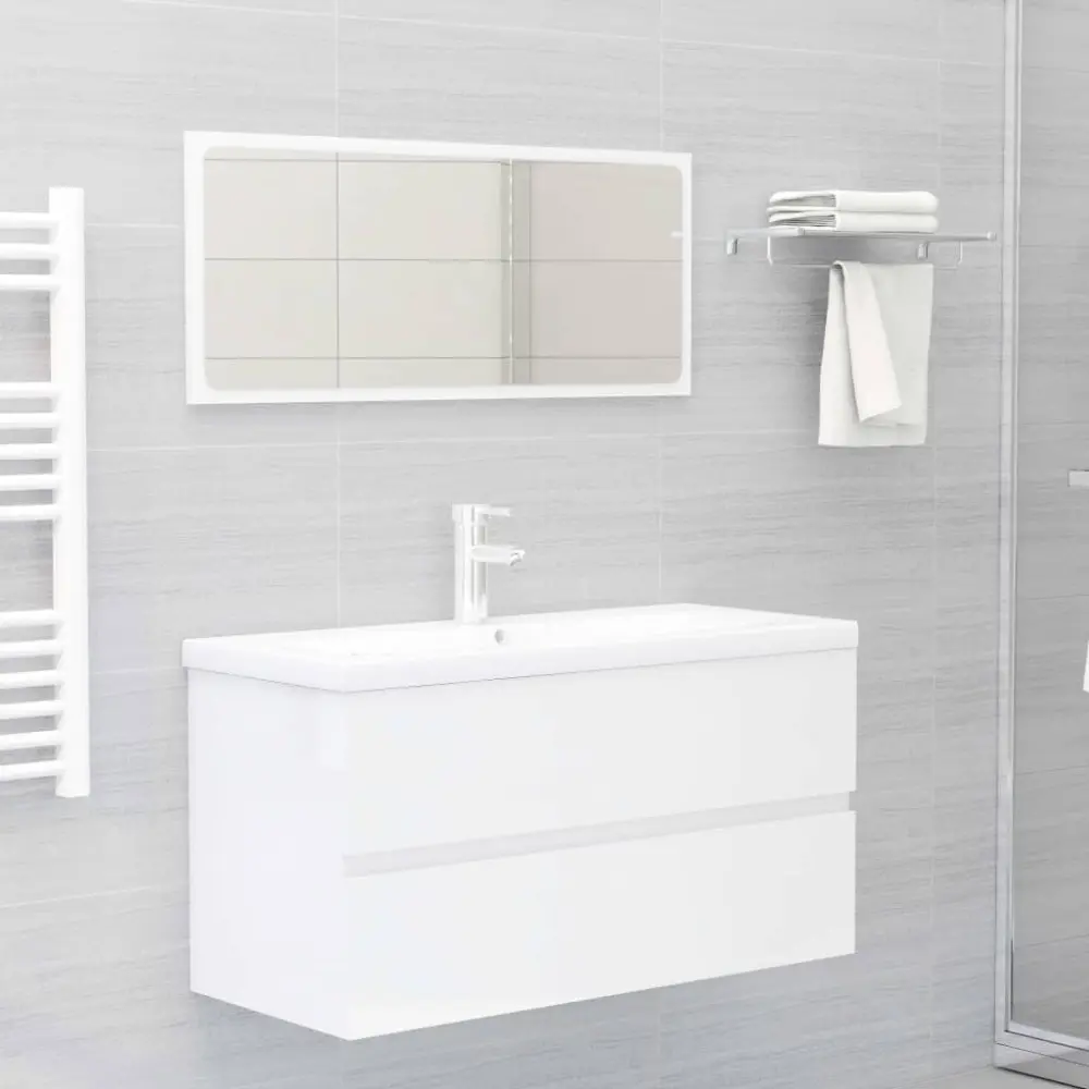 vidaXL set muebles de baño 2 piezas madera contrachapada blanco ✔ Construcción Duradera y de Larga Vida Útil ✔ Tapón de desagüe con sellado hermético total 🛒 Consigue un llenado preciso y eficiente