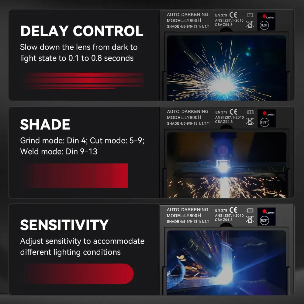Protect grade: DIN13. Constant protection from harmful UV/IR rays, whether the lens is darkened or not.